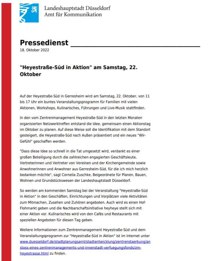 Zentrenmanagement für die Heyestraße-Süd geht weiter