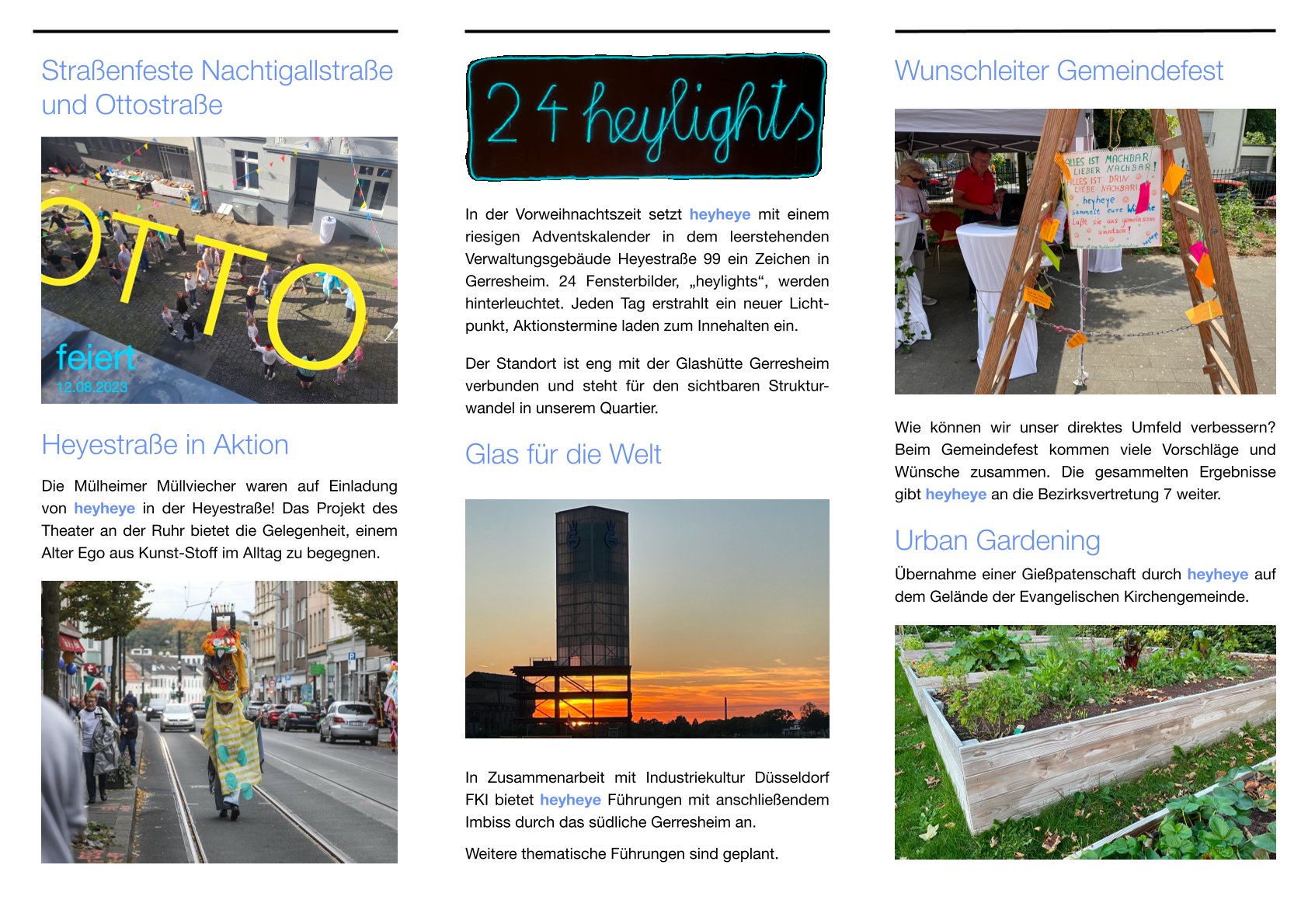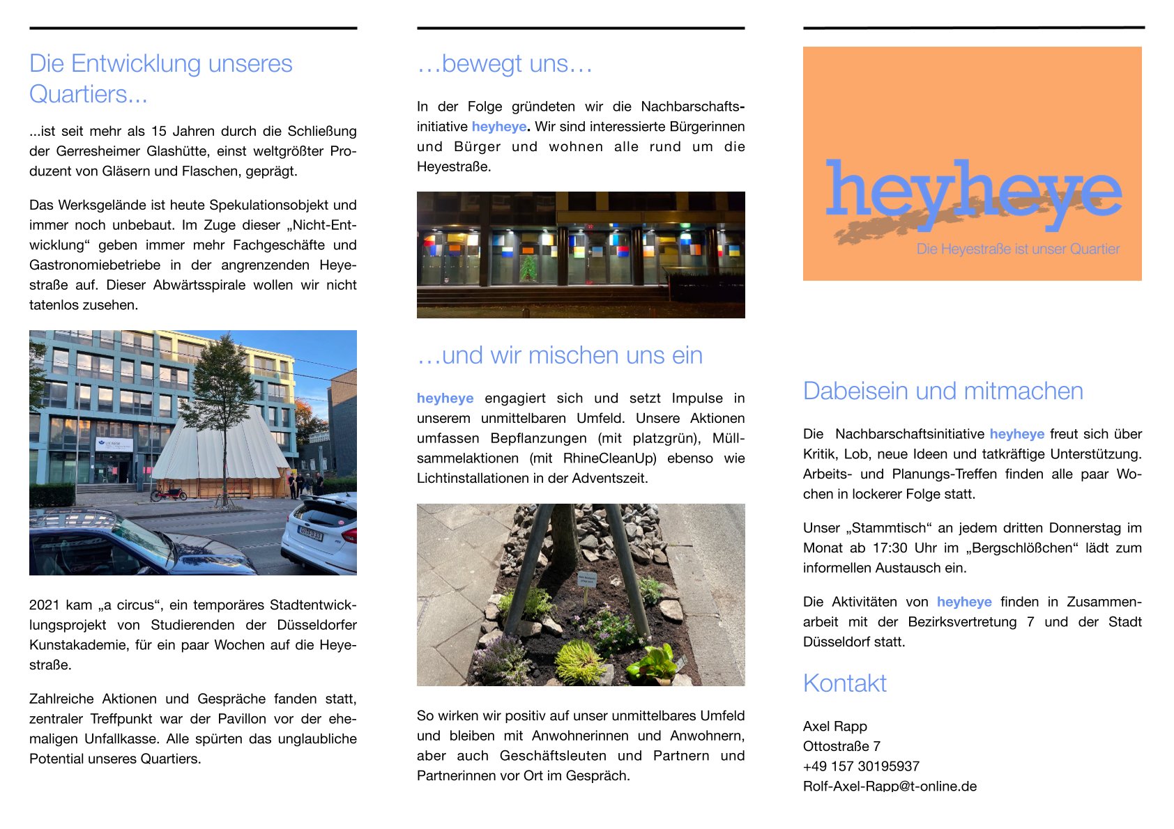 Wir möchten aktiv an der positiven Entwicklung der Heyestraße mitwirken und langfristige Perspektiven, Ziele und Maßnahmen mitgestalten.